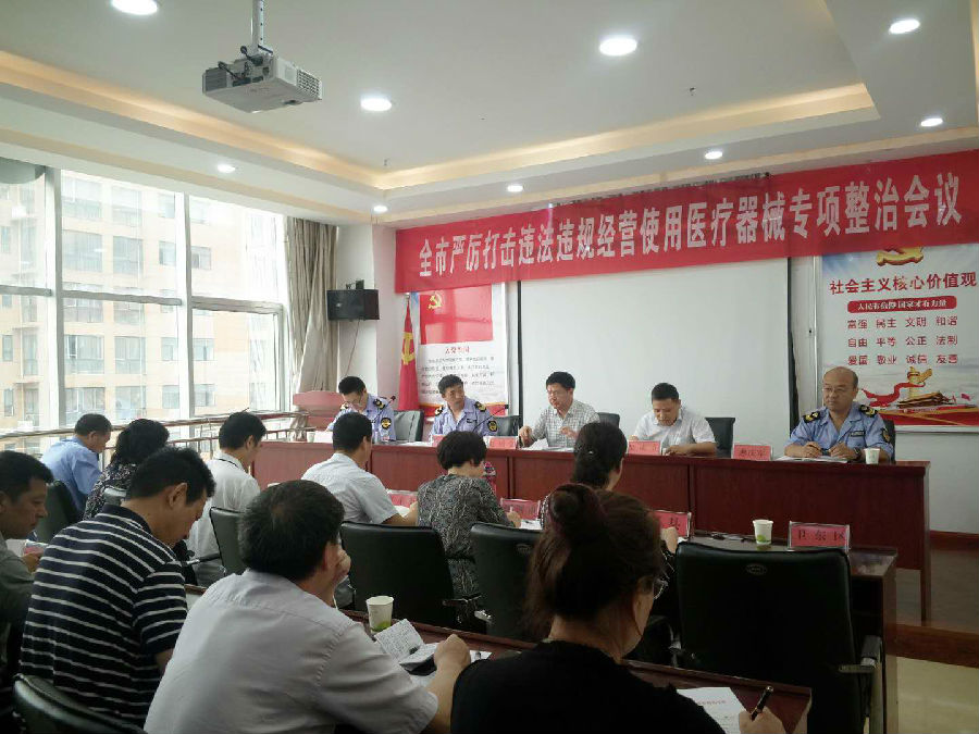 会议由市局办公室吴主任主持,市局食品药品稽查大队副大队长惠庆军传达了市局成立专项整治工作领导小组的通知,市局医疗器械监管科科长刘晓峰宣读了全市严厉打击违法违规经营使用医疗器械专项整治工作方案。赵国强副局长对认真落实专项整治工作提出要求:
